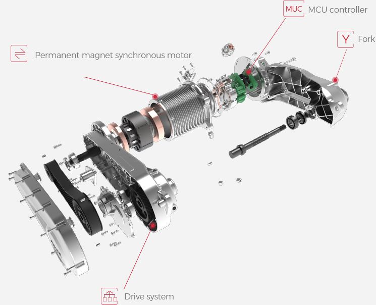 Structuring the motor, controller and transmission into one piece, "DiLu" has excellent features with higher integration level, smaller size but more power output.